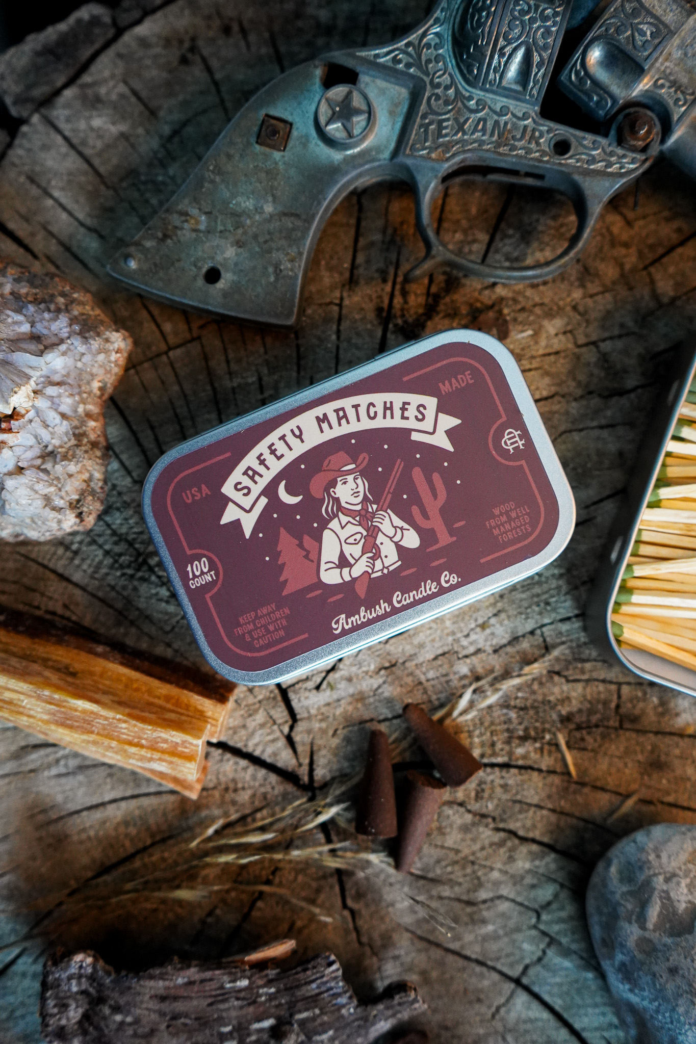 Each tin contains 100 safety matches with a strike surface on the bottom for dependable lighting. The match sticks are made from sustainably sourced wood and crafted in the USA using American-made components, because even the simplest tools should be well made.